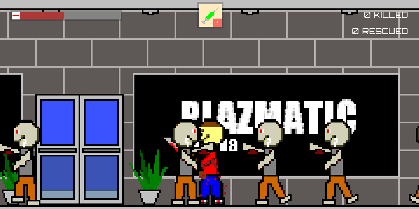 A mall has been overrun with zombies, navigate through the different floors, collecting items to help you defeat the zombies and save the hostages that are still alive.