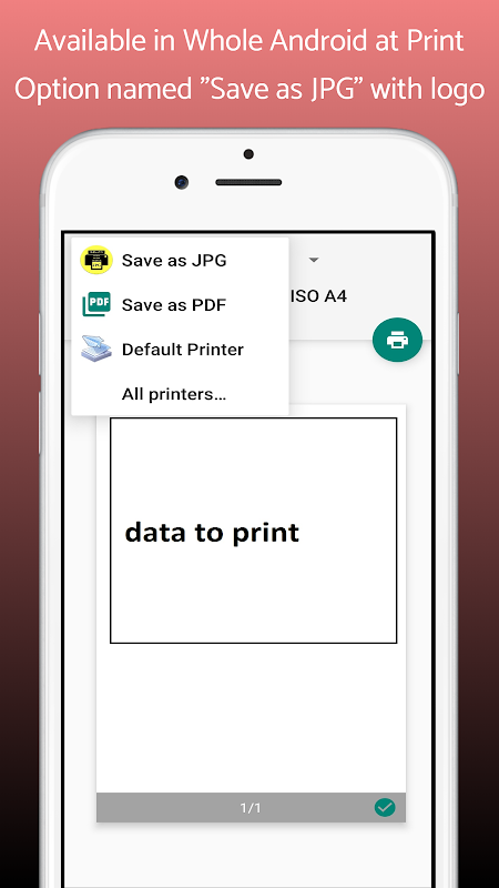You can see this Printer when printing from anywhere on the phone named as "Save as JPG" with our icon