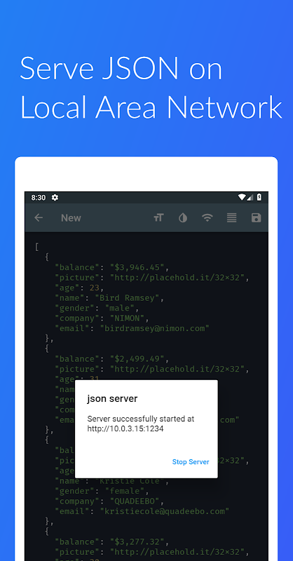 An app which performs as a json editor, json viewer and json server