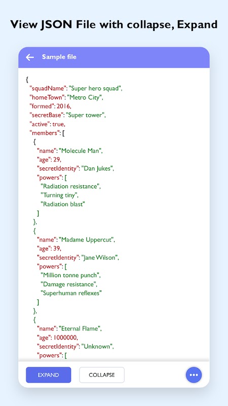 JSON Viewer and Beautifier is a lightweight application that will read JSON data, expand and collapse JSON view accordingly. Opening a JSON file on a smartphone is now easy with this JSON Viewer and Beautifier app. This JSON file Viewer has also made JSON file sharing easy.
