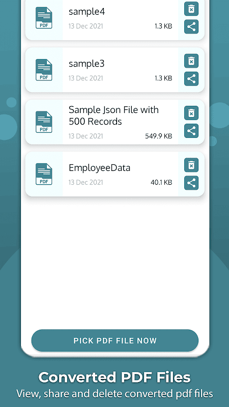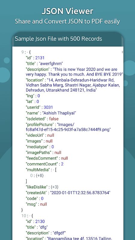 Through Json reader you can directly convert JSON to PDF. Json reader also support PDF Viewer through which you can view any kind of pdf file easily. Json reader keep history of all converted json to pdf files which you can view and print it easily. You can also pick any pdf file from device storage to view it.