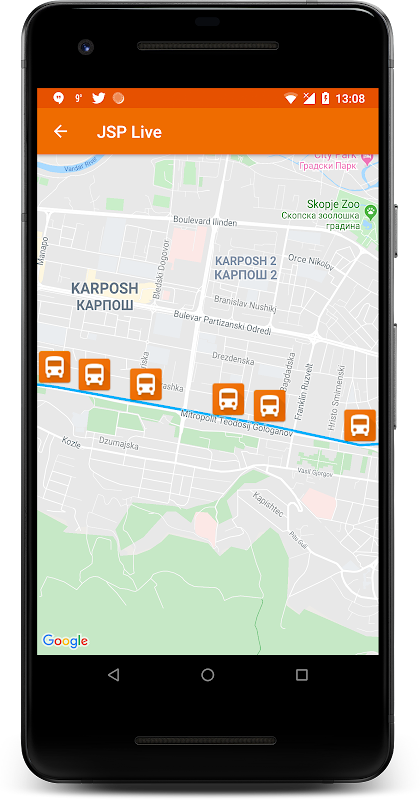 JSP Live ви овозможува на едноставен начин да го дознате пристигнувањето на секој автобус (ЈСП и приватен) на секоја од автобуските постројки во градот Скопје. Со оваа апликација ги имате во рака сите електрноски табли со информациите за пристигнувањето на автобусите на соодветната постројка, а кои се поставени само на некои од постројките. Се што ви е потребно е Интернет врска, дозвола за користење на вашата локација и оваа апликација.
