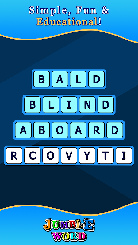 Welcome to Jumble Word, the game that aspires to become the new favorite word game. The aim of the game is to find all the jumble words. The words on each puzzle are not related to each other. The new word game allows you to search for thousands of words and so you can easily improve your vocabulary, concentration, and spelling skills! Jumble Word is and will always be free and waiting for you to play!
