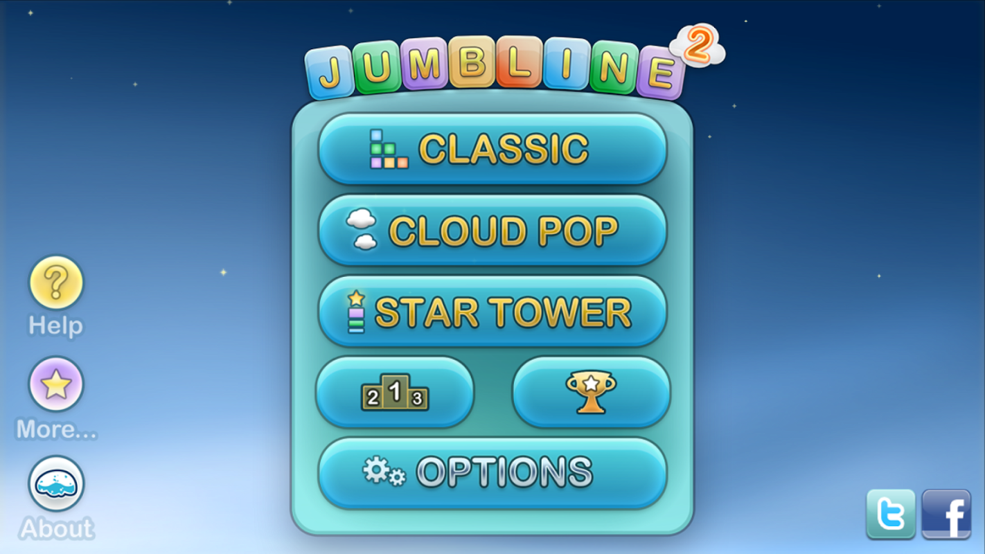 Jumbline 2 includes two additional games: Cloud Pop and Star Tower.