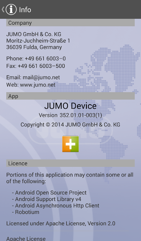 The JUMO Device app also supports the automation system JUMO mTRON T (as of version 249.03.05), the process and program controller JUMO DICON touch (as of version 266.02.03), and the modular multichannel measuring device for liquid analysis JUMO AQUIS touch (as of version 304.02.08). The paperless recorder JUMO LOGOSCREEN 600 is supported as of version 323.01.01.