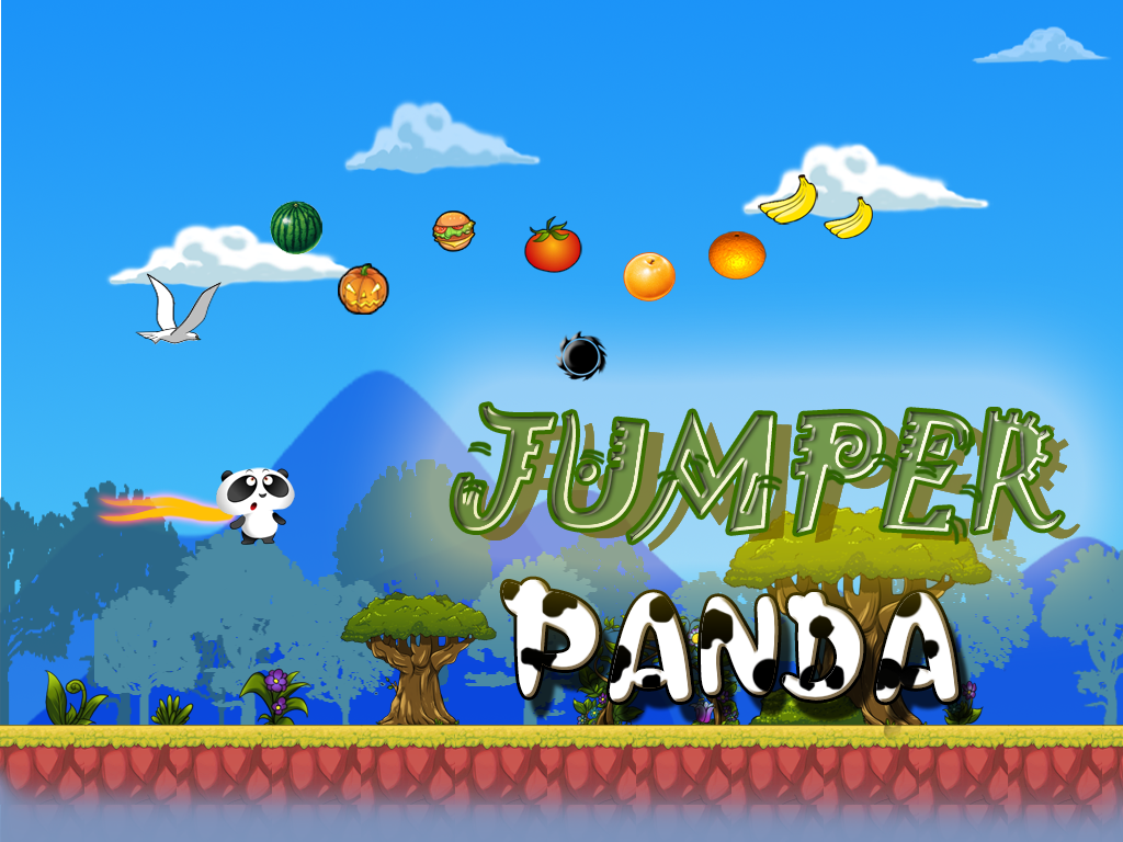 Jump and collect food and sate for panda!