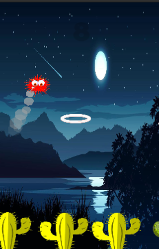 Fly with yellow object and avoid falling over the cactus by jumping and flying.