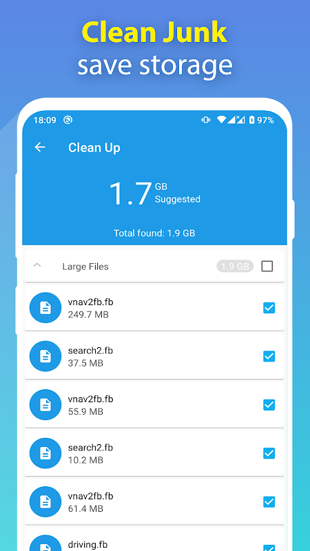 OneCleaner analyze and find junk, residual, cache, and temp files that take up your phone's memory and storage space.