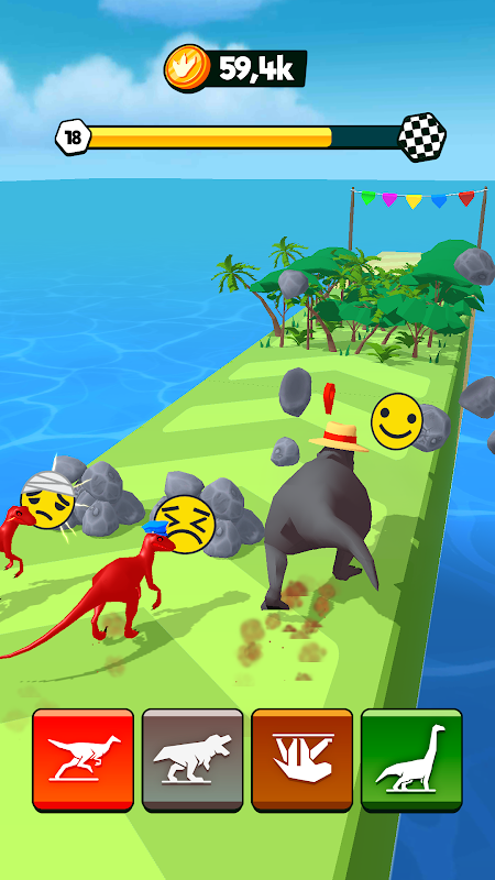 Play as a dinosaur. Transform your dino, crush stones, go throw the obstacles like a knife through butter and come first.