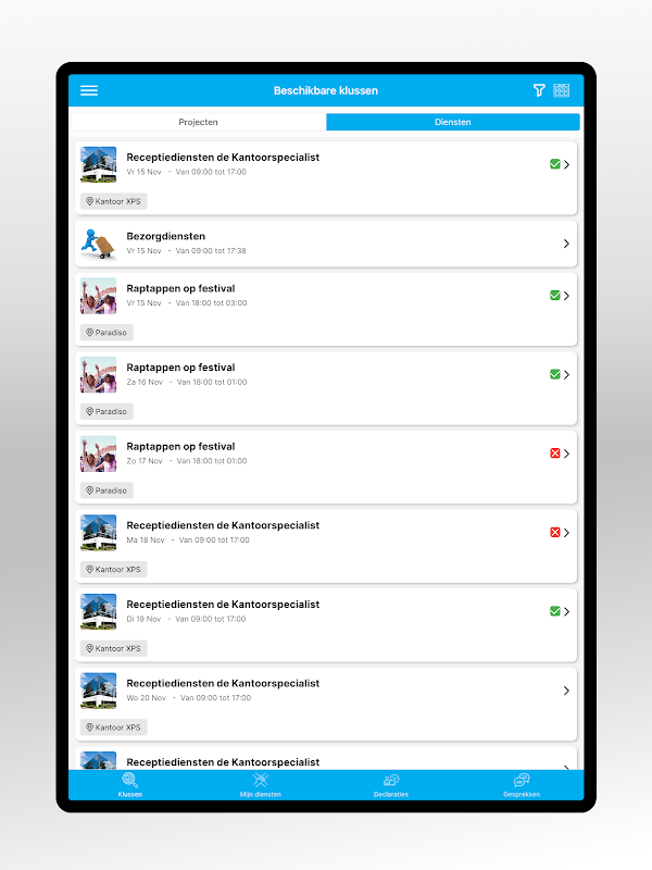 Find new jobs and sign up easily. View the services you are scheduled for and then declare your hours worked and any travel and/or expenses.
