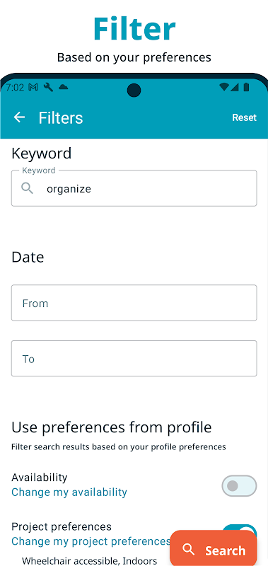 - Search for opportunities based on your account location, your current location, or by an inputted location