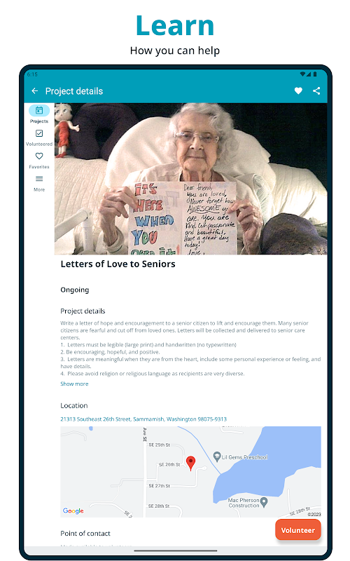 JustServe app gives you the main features of JustServe.org to help you find volunteer opportunities while on the go. It can link into your phone’s location services, calendar, and map apps to make volunteering in the community easier than ever.