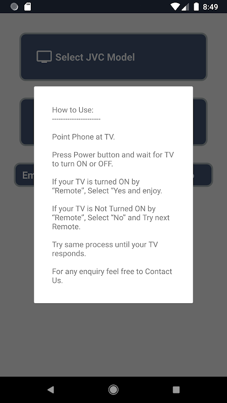All Mobiles with IR Blaster supports this JVC TV Remote.