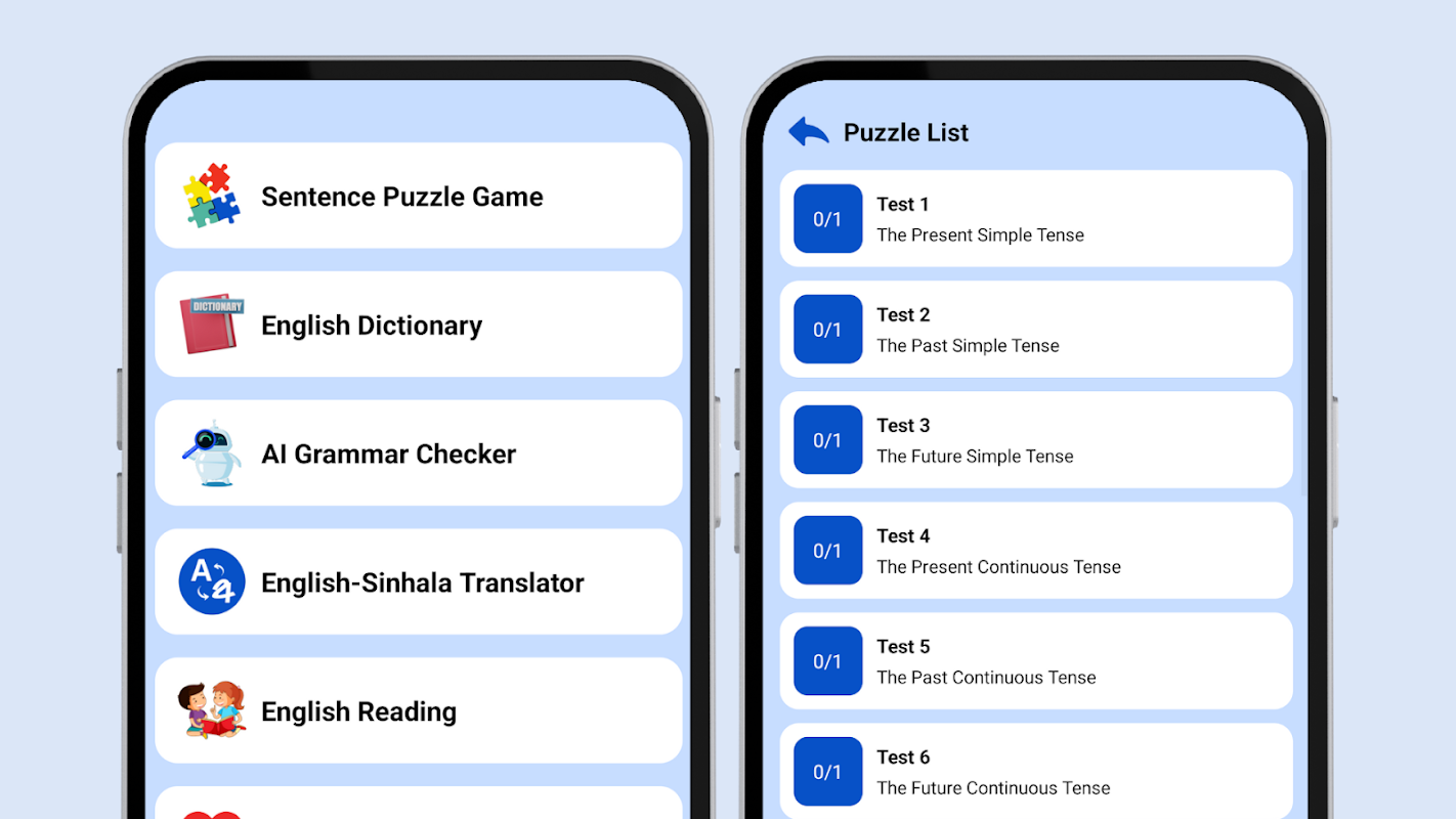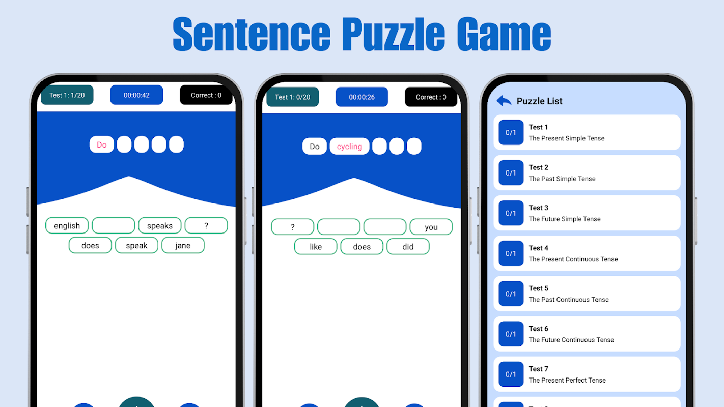 Are you ready to improve your English grammar while having fun? Sentence Puzzle Game is a unique, interactive app that helps you learn and practice English tenses, verbs, and prepositions in a playful and engaging way.