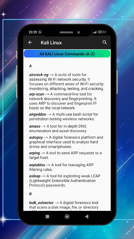 Kali Linux commands app - Learn ethical hacking with structured courses!