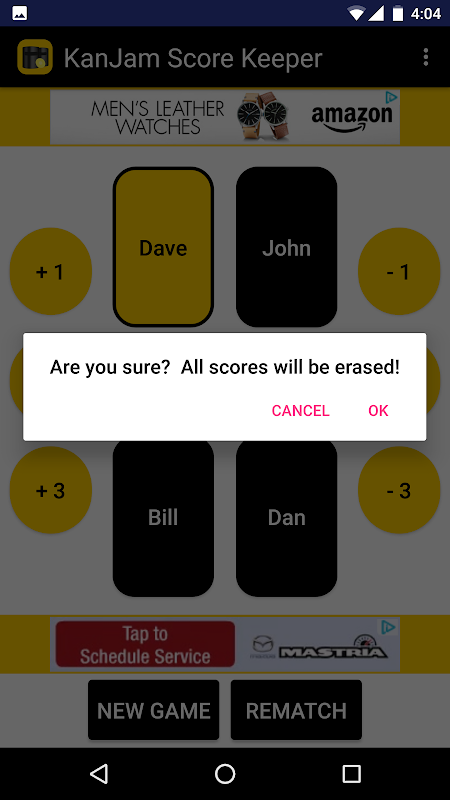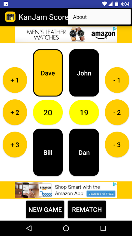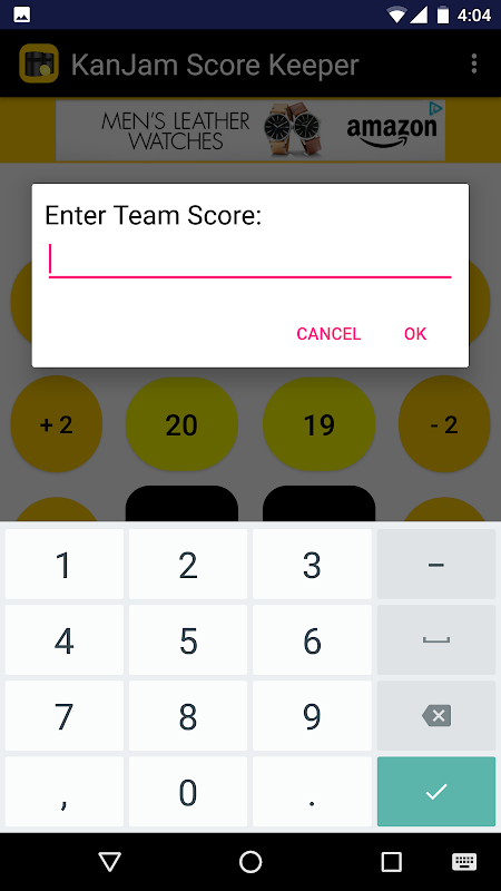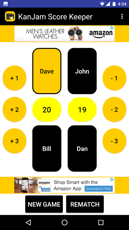 This app helps a user keep score at a game of KanJam