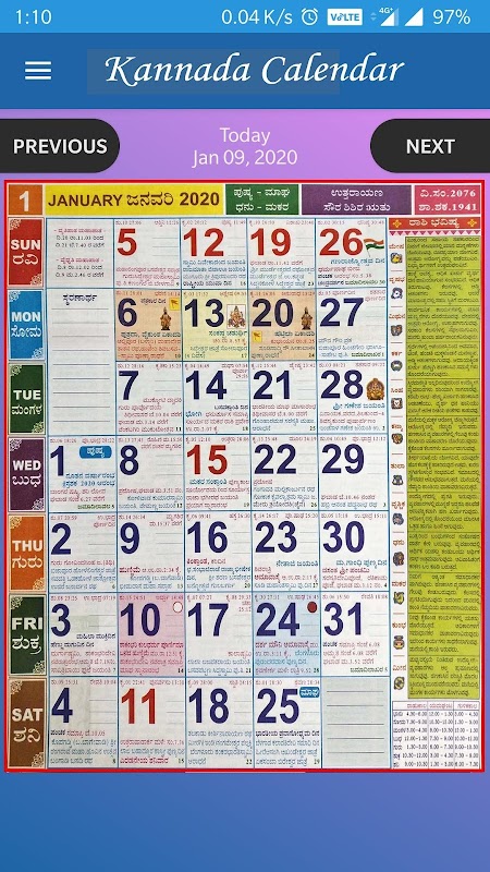 Kannada Calendar 2020 - ಕನ್ನಡ ಕ್ಯಾಲೆಂಡರ್ 13.4