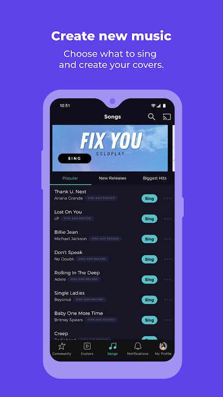 Sing, record your voice and share it. Become a star!