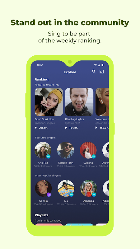 Have fun singing, share your recording, get followers and stand out in our community in Latin America.