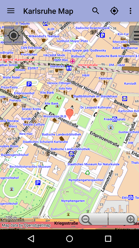 With this app you have the map of Karlsruhe right in your pocket! It offers an interactive map that lets you browse the city at amazing detail. Additionally, it comes with a search index for locating streets, but also other places of interest such as museums, restaurants, cafés, hotels, sights and many more. After installing the app, no internet access is required anymore, neither for browsing the map nor for using the search functionality. As a result, the map loads reliably fast and it helps you reducing your data usage to stay within the limits of your data plan. Even if you're a tourist and do not have any mobile data plan at all, the map works equally well, independent of WIFI connectivity.