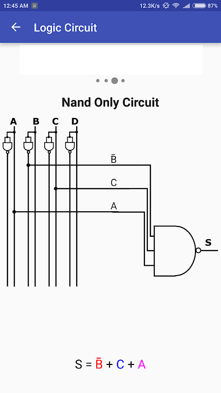 This application solves Karnaugh Map, also called Kmap, for 2, 3, 4 or 5 variables. It is the only application I know that will provide (and show on Kmap) ALL possible kmap solutions. It will also shows four different versions of an optimized output logic circuit: a tradicional version, a circuit with common inverters and NAND/NOR only circuit.
