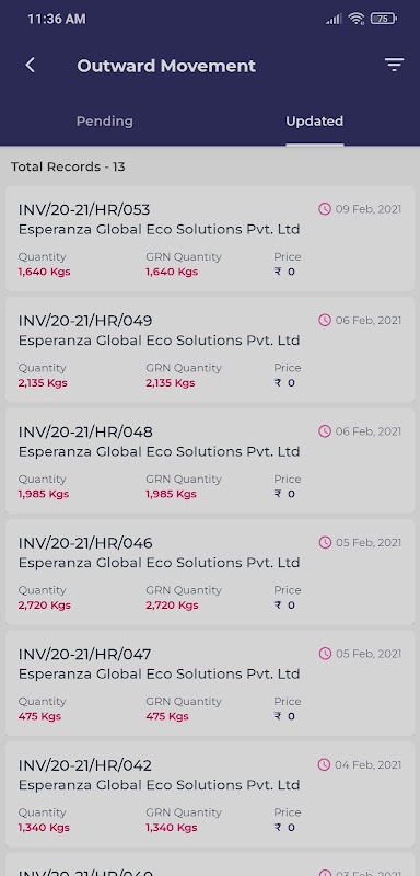 - Identify the amount of plastic waste collected and recycled by our network from the collection reports available on the app