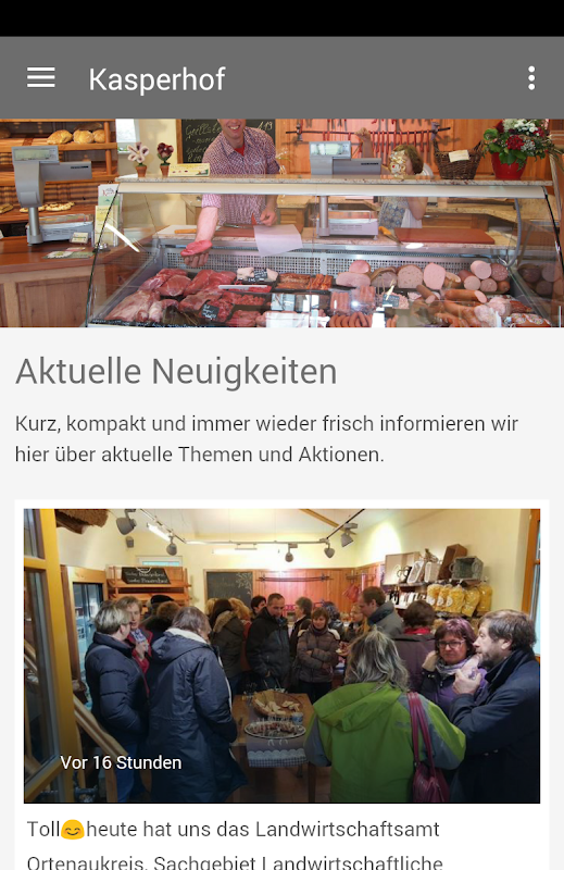 Der Kasperhof wird seit über 300 Jahren von der Familie Müllerleile bewirtschaftet. Als Vollerwerbsbetrieb ist die Direktvermarktung mit fachlicher Beratung ein Schwerpunkt. Unsere Produktion geht von der eigenen Aufzucht über die Verarbeitung bis zum Verkauf im Hofladen. Hol dir diese Smartphone-App und sei immer auf dem Laufenden was bei uns am Kasperhof im Schuttertal gerade passiert. Du kannst über die App auch Bestellungen erledigen oder direkt mit uns in Kontakt treten. Wir freuen uns auf dich!