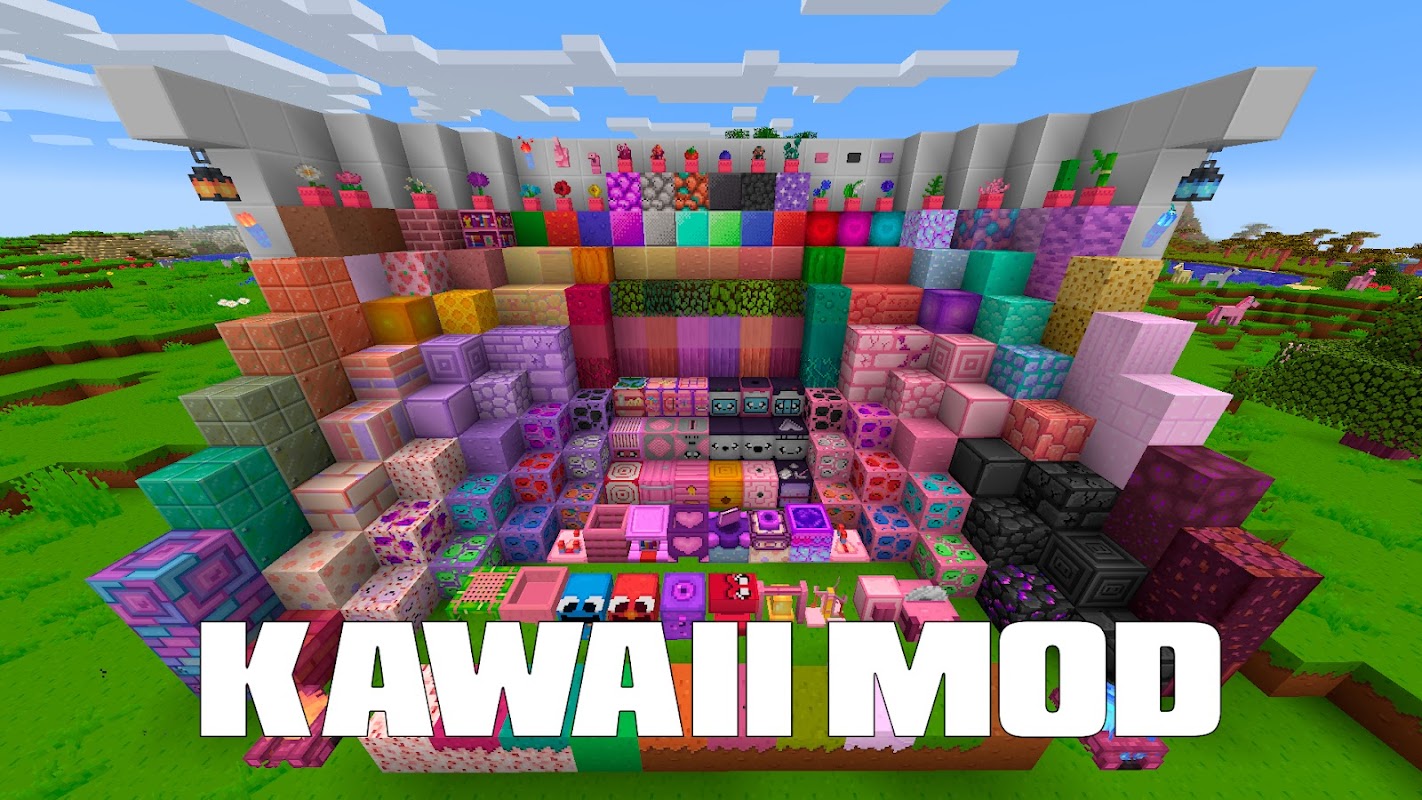 Kawaii World mod for mcpe will completely change the world of minecraft! Kawaii textures and addons will add new cute animals and beautiful pink blocks, and different things for girls in nice pink and pastel colors! Your card will transform and become extraordinarily beautiful with many flowers growing!