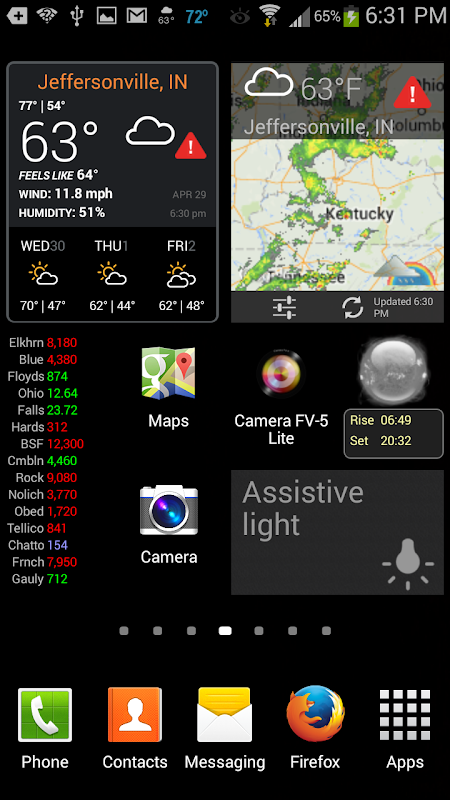 This widget is designed for kayakers to determine local (and surrounding) water levels of popular rivers. It can be added to the home screen as a 1x1 or 1x2 widget, in the 1x1 mode it will just show the top 6 entries, which are the most local to Louisville.