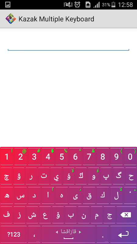 A Kazakh keyboard which supports all the Kazakh alphabets for Android