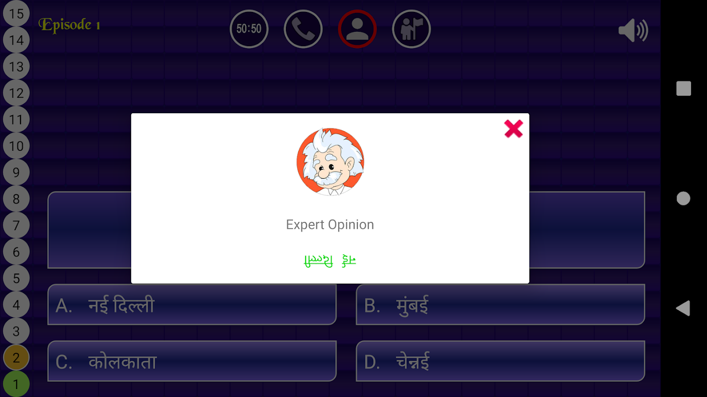 There are four lifelines to help the player becoming millionaire. These lifelines are 50-50, ask a friend using messaging apps like whatsapp, facebook, etc, expert opinion and audience poll. The quizzes are available in both Hindi and English language.