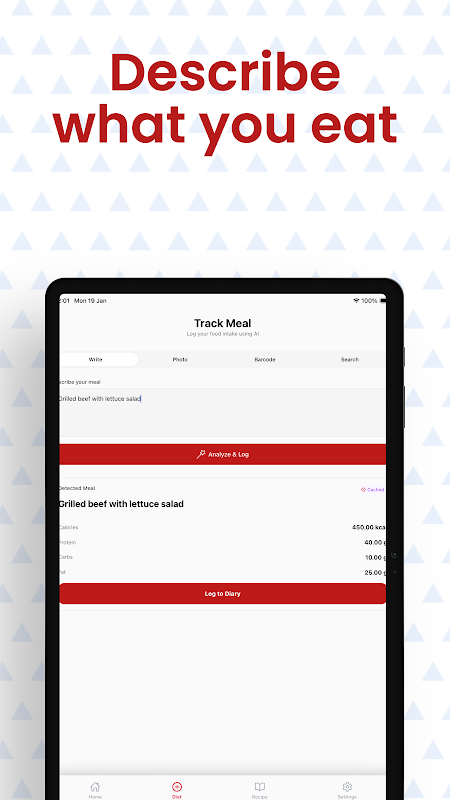 ✍️ Natural Language Tracking: No more searching through endless databases. Just type "I had two poached eggs and a tomato salad" and let KCal AI do the math for you.