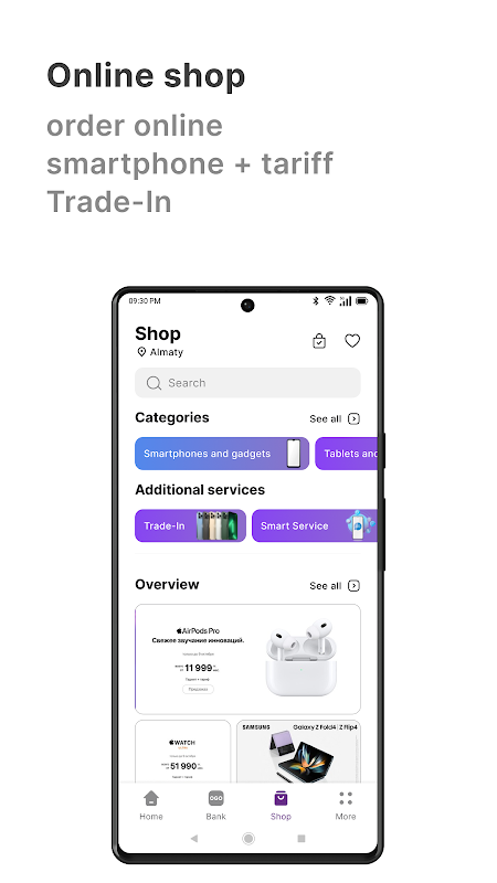 The app combines telco services, rewards, loyalty program, and an online shop in one place.