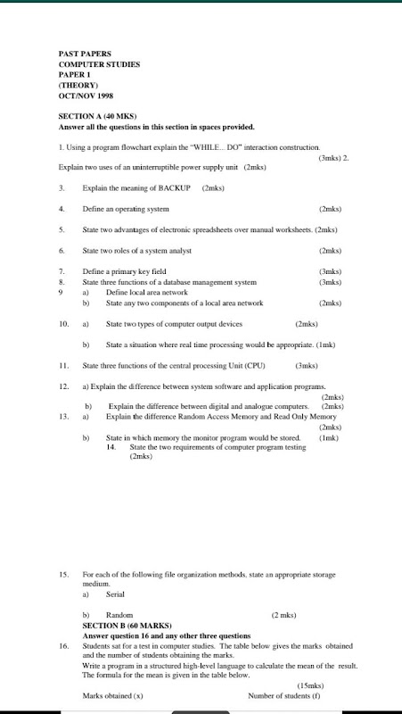 COMPUTER STUDIES KCSE QUESTIONS AND ANSWERS