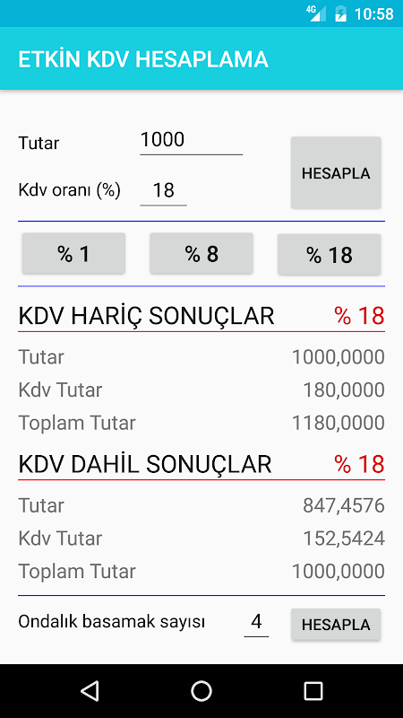 • KDV Hesaplama - Dahil ve Hariç screenshot 4