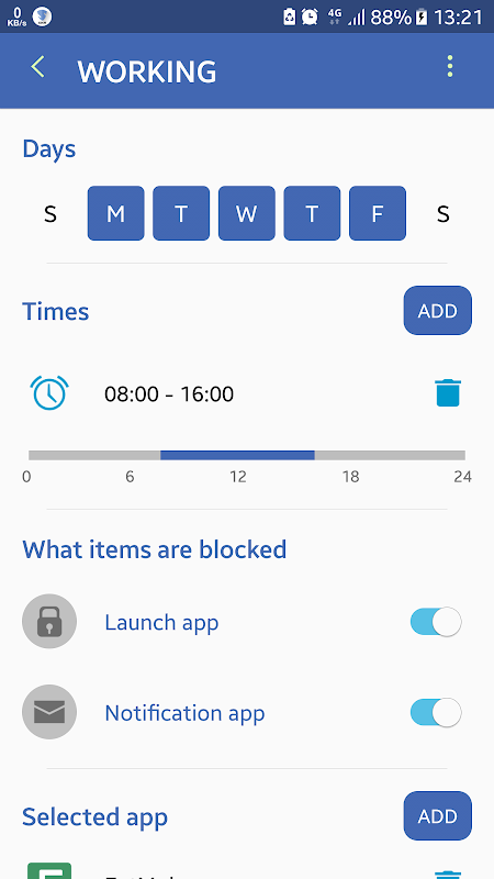 You can also set dates and times to block there applications and notification from them. Otherwise, you should set PIN password to secure your profile in this app.