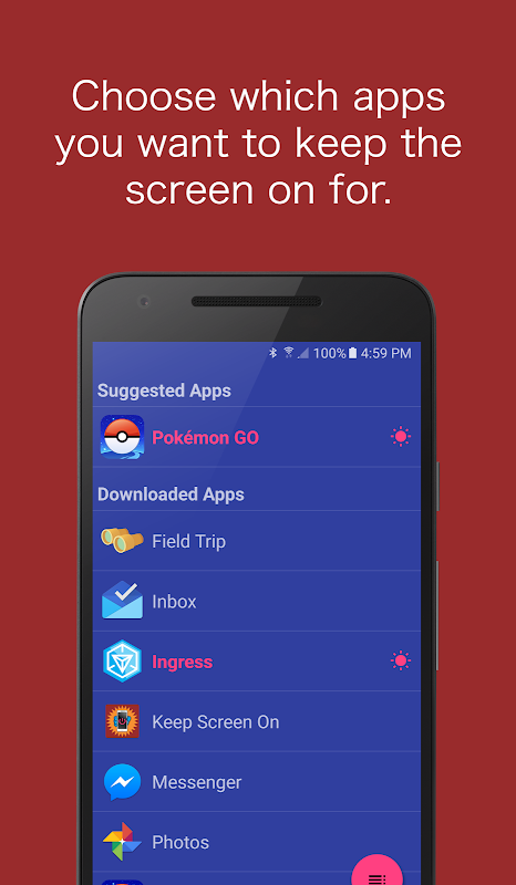 Annoyed by your screen turning off when you're using certain games, apps, or websites? Don't change your display settings and waste battery by keeping the screen on when the home screen is open. Install Keep Screen On© and identify which apps you want to keep the screen on for. When you have one of these apps open, the screen will stay on - when you use an app that is not defined by Keep Screen On© your phone's screen display will timeout as normal.