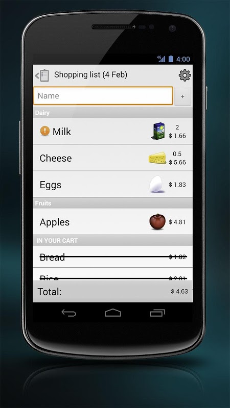 This application is a useful and simple application for your phone! «Shopping» allows you to make a list easily because special suggestions and to calculate a value of all your purchases.