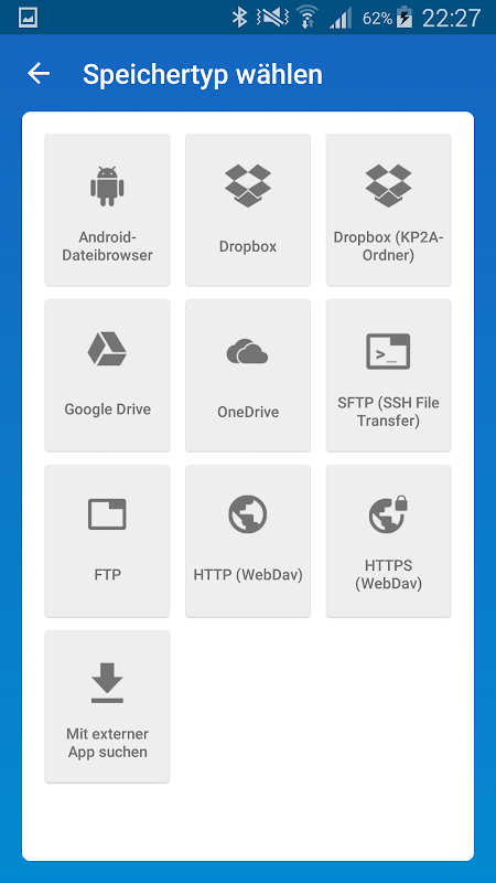 * Synchronize your vault using the cloud or your own server (Dropbox, Google Drive, SFTP, WebDAV and many more). You can use "Keepass2Android Offline" if you don't need this feature.