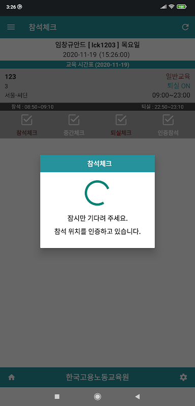 Korea Employment and Labor Education Institute mobile attendance system KELI mobile attendance application for trainees.