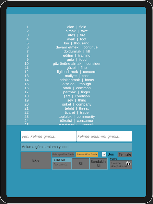 - sort the list by word or meaning (only shows)