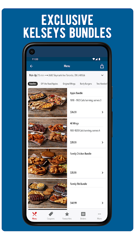 Hungry? Get Kelseys at your fingertips. Craving our Signature Spinach Dip, 100% fresh Canadian ground Chuck Burgers or fresh never frozen fries and wings done eight ways? You are just a few taps away from freshly prepared Roadhouse classics, waiting to be picked up!