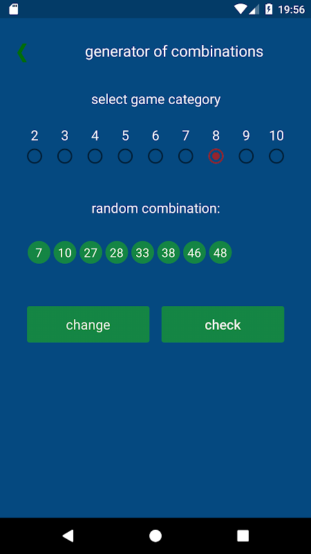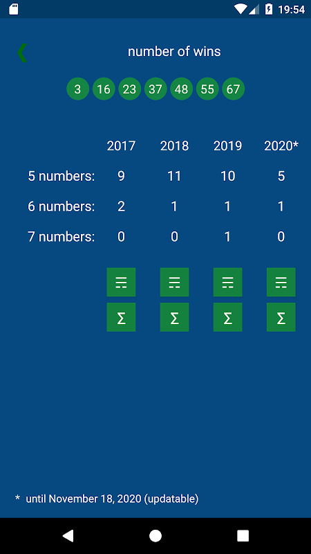 This application shows the statistics of any combination in the KENO lotto for 4 years and its income.