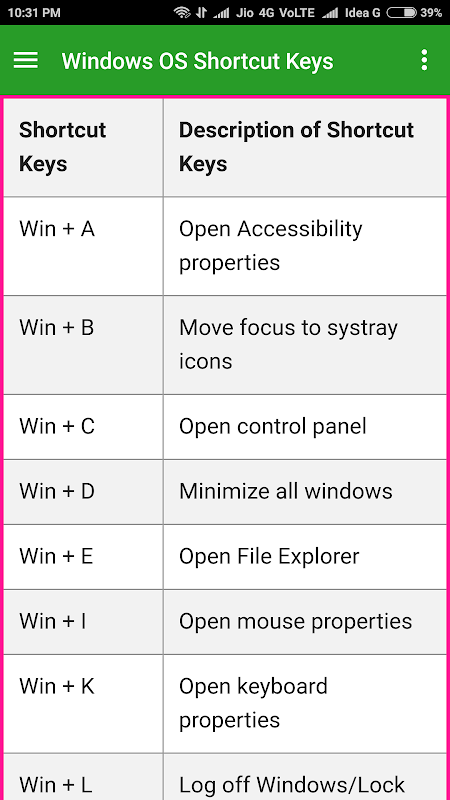 ✓ Windows OS Keyboard Shortcuts