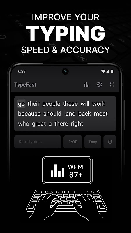 TypeFast is a powerful typing practice, wpm test, and keyboard trainer app designed to help you boost typing speed, accuracy, and efficiency on any keyboard - whether you’re using mobile touch typing, OTG, or Bluetooth keyboards. With research‑based word lists, fullscreen typing mode, detailed progress tracking, and custom training options, TypeFast makes typing practice simple, effective, and fun.
