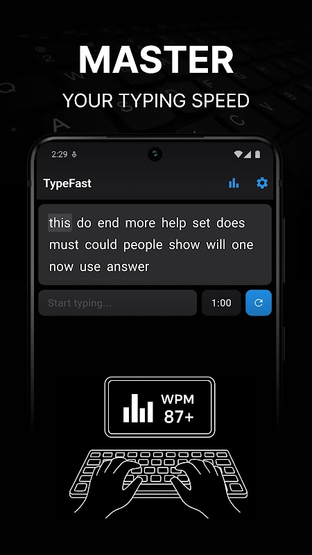 TypeFast helps you build real typing skills using scientifically-validated word lists. Whether you're using your phone screen, an external keyboard, practice the words that actually matter.