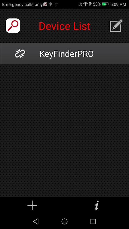 First of all, searching the Bluetooth of key finder. Tap the Scan icon in the Device List to connect with key finder, then the app will show its name and so you can rename it as you like.