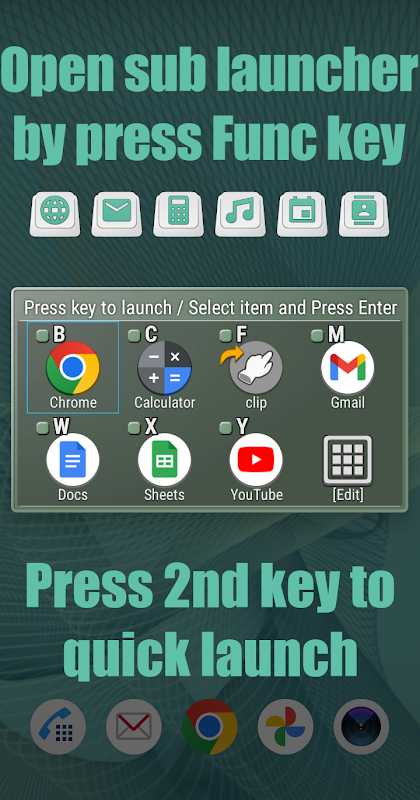 - Launch app / trigger shortcut / show sub launcher by each app-launch "Func" key
