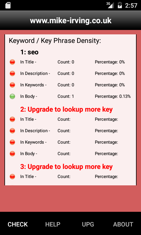 The app is simple to use. Simply enter your Website URL, and your key phrase, to look for, the tap 'Go'.