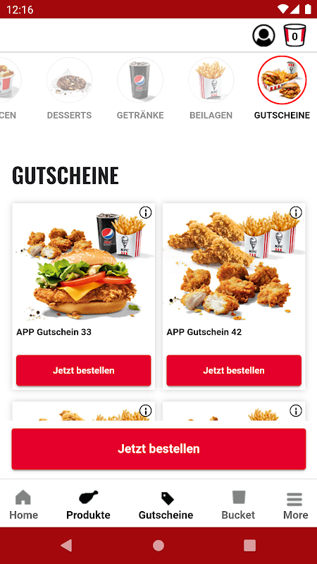 From now on you also have all important functions at a glance: Our product overview, the restaurant finder and of course all information about KFC!